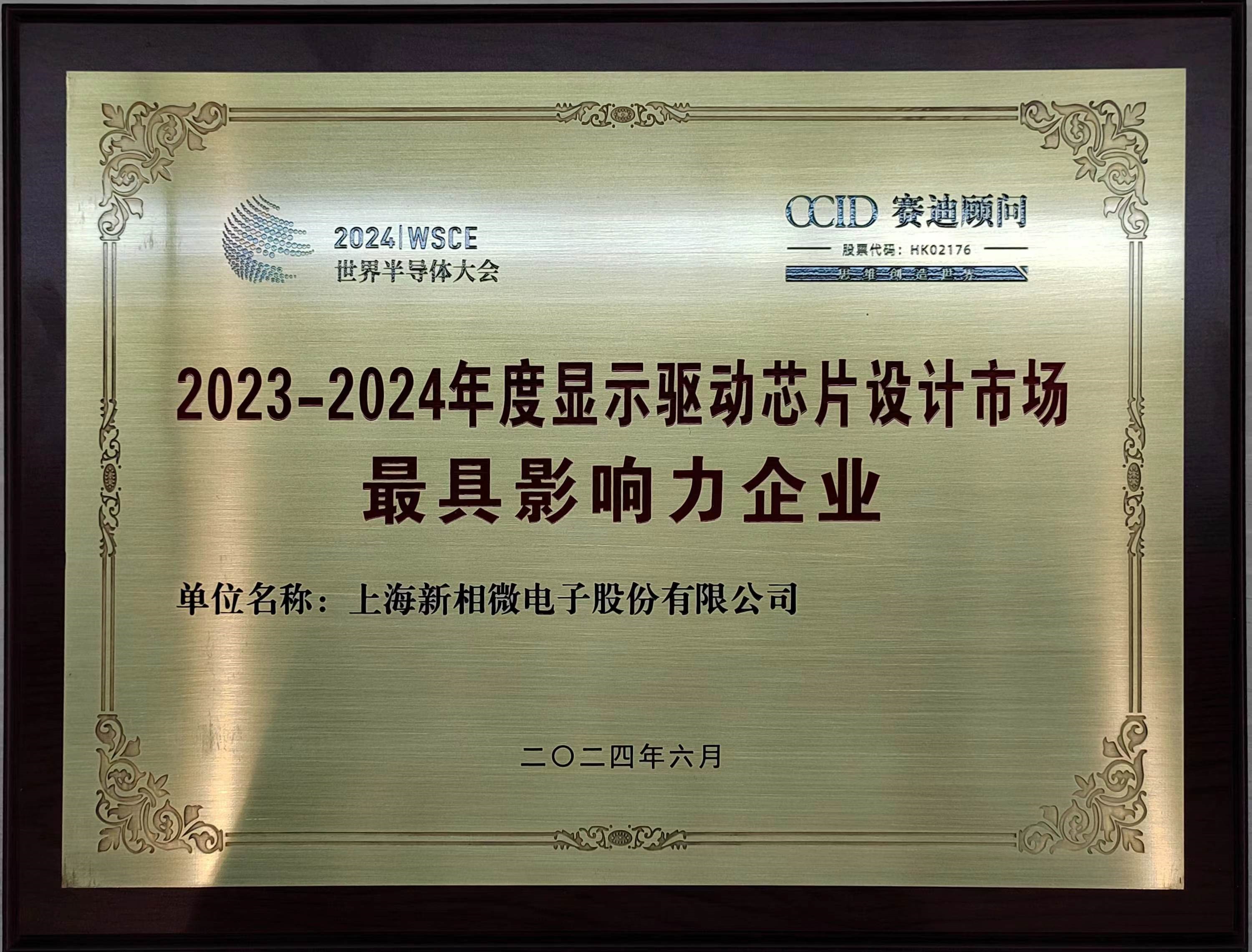荣获“2023-2024年度显示驱动芯片设计市场最具影响力企业